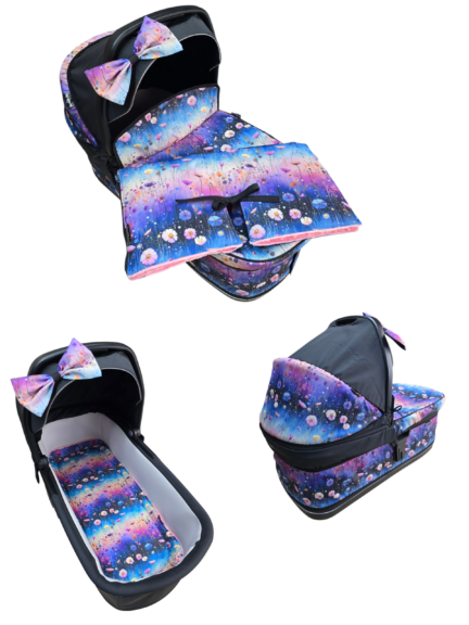 Šijeme z nepromokavého polyesteru (kočárkovina, softshell) bez podšívky. Zapínaní na zip. Cena a rozměr: na bok kočárku š 28 x v 20 x hloubka 8 cm od 350 Kč. Na bok kočárku extra š 35 x v 25 x hloubka 7cm od 400 Kč (ideální na nepadací deku). Možno našít rexlexní pásku +50 Kč.