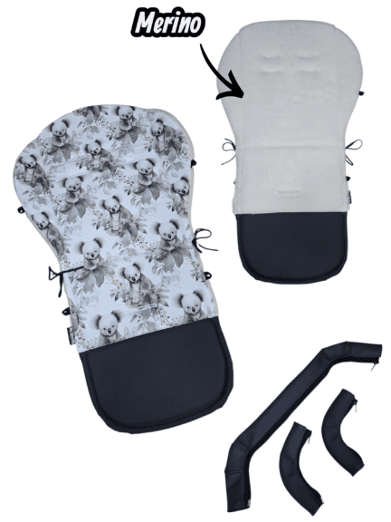 Cena od 1400 – do cca 1600 Kč, záleží na výběru látek. Výplň studená HR pěna 2cm je velmi prodyšná, optimálně zajišťuje prostupnost vzduchu, výborně odvádí teplo, je tvarově stálá, ani po několika vypráních se nedeformuje, pružně se přispůsobí lidskému tělu, zamezuje výskytu roztočů a díky výšce tlumí otřesy kočárku. Takže pokud dítěti chcete dopřát opravdový komfort, je to jasná volba. NOVINKA – Merino vlna – je neuvěřitelně hebká a jemná k citlivé dětské pokožce, přirozeně reguluje teplotu – v zimě hřeje, v létě chladí, odvádí vlhkost a je prodyšná, příplatek + 350 Kč